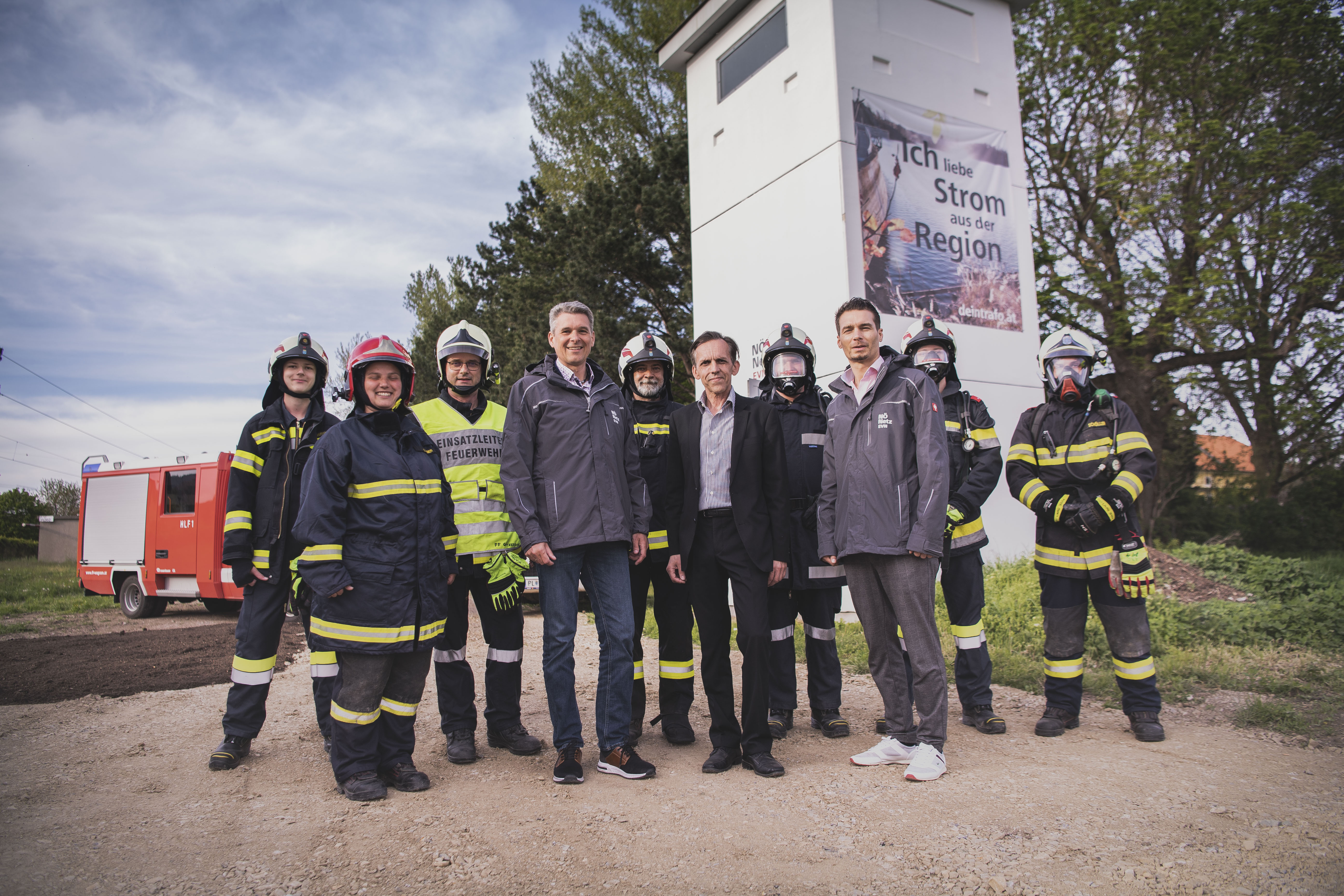 Die freiwilligen Feuerwehren aus Getzersdorf mit Kommandant Herwig Leitner und Wagram ob der Traisen mit Kommandantin Emma Weber nutzten die Gelegenheit für eine Übung und besichtigten auch gleich die nebenan stehende, mit neuester Technik ausgestatteten, Trafostation.