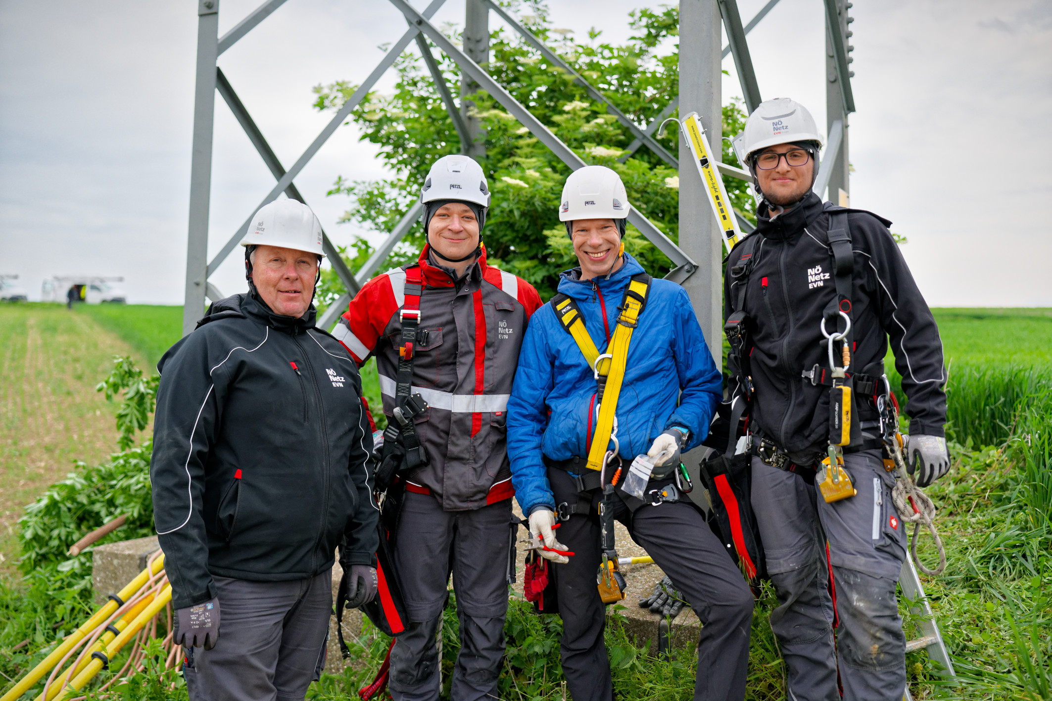 Bild 1: v.l.n.r Johannes Neuditschko (Netz NÖ), Tobias Artner (Netz NÖ), Wildtierökologe Richard Zink und Dominik Fasching (Netz NÖ).