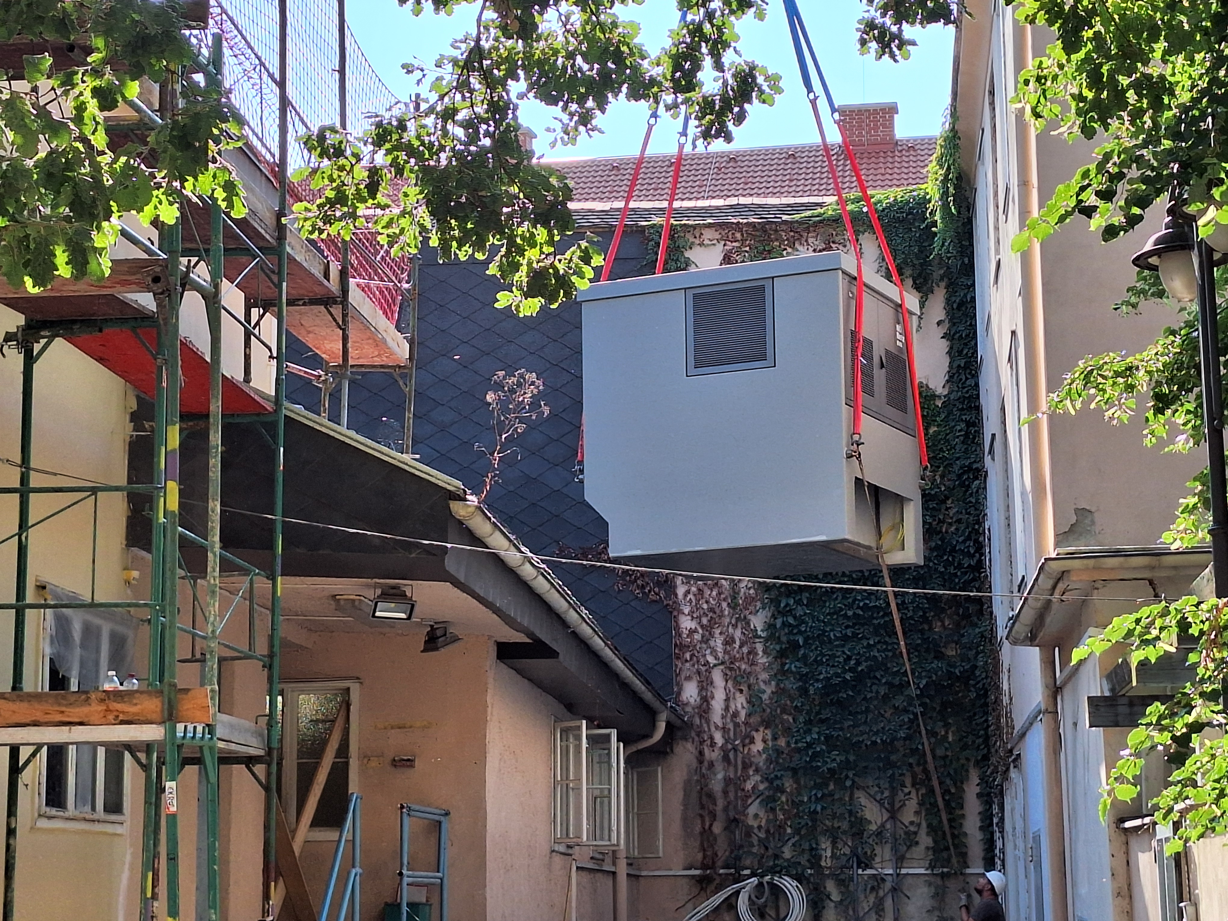 Dass es vor allem im Stadtgebiet nicht immer ganz einfach ist, einen geeigneten Platz zu finden, zeigt ein aktueller Fall in Wiener Neustadt. Hier wurde eine neue Trafostation nun extra mittels Kran über ein Wohnhaus gehoben, um sie auf der anderen, nicht zugänglichen Seite aufzustellen.