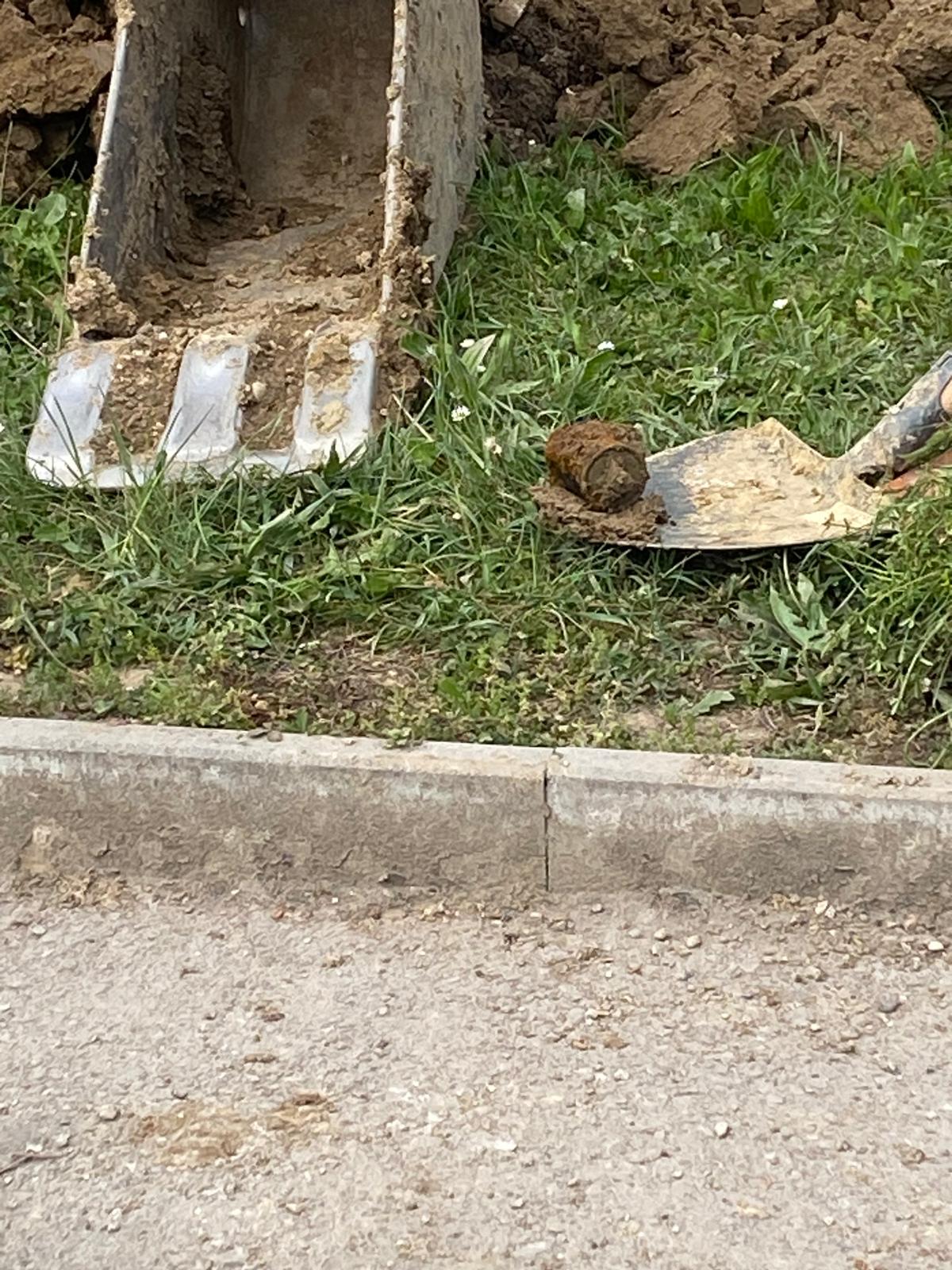 Der Entminungsdienst barg die Granate und suchte den Nahbereich auf weitere Kriegsrelikte ab. Dabei wurden noch Zünder für die Granate sicher gestellt. Leider stellte sich bei der Suche auch heraus, dass eine Person unter dieser vergraben war.