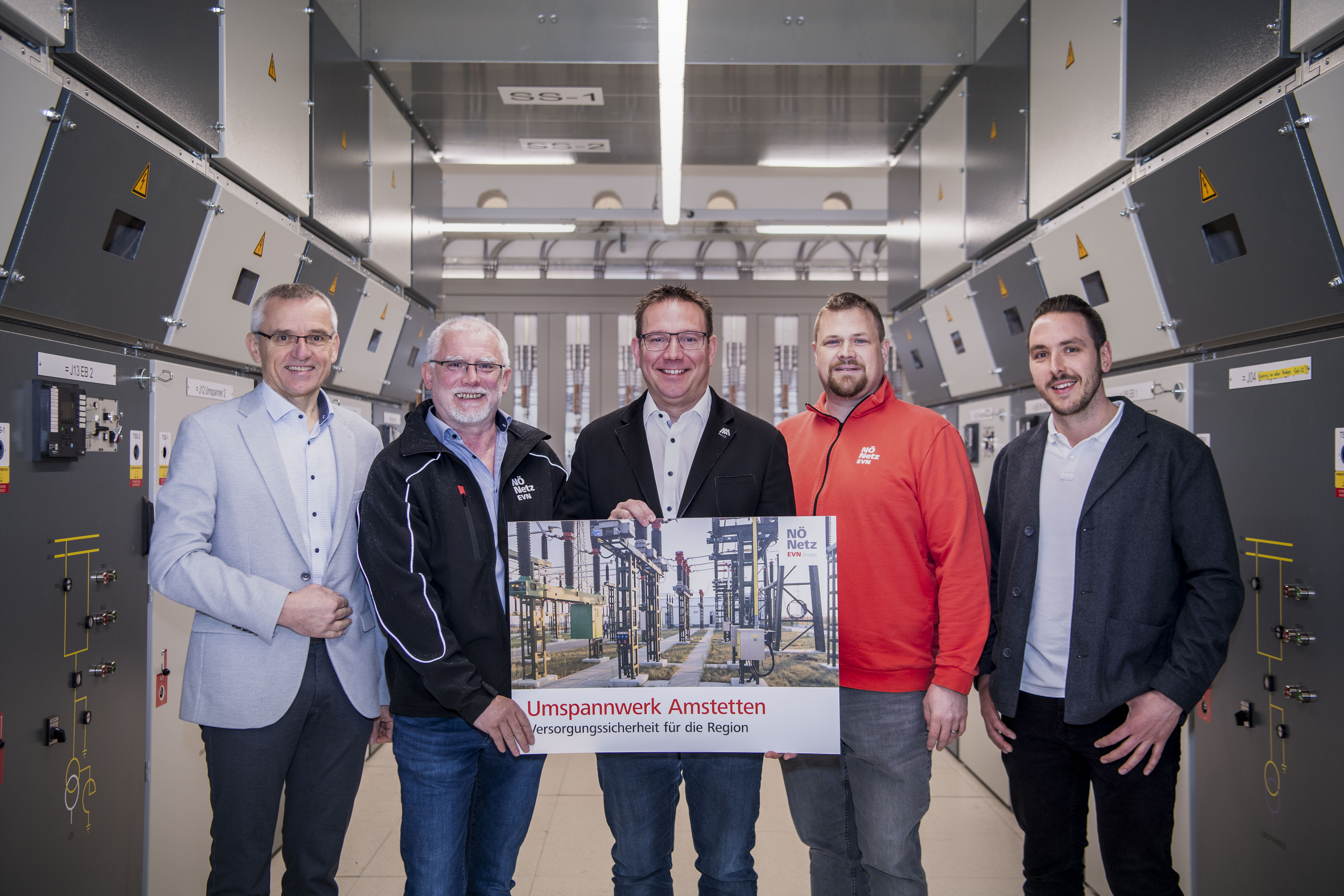 Bild 1: Stadtrat Heinz Ettlinger, Leiter Netz NÖ Service Center Amstetten Johann Eßletzbichler, Bürgermeister Christian Haberhauer, Netz NÖ Projektleiter Markus Schaberger, Stadtwerke Amstetten Leiter Stromverteilung Michael Ostermann