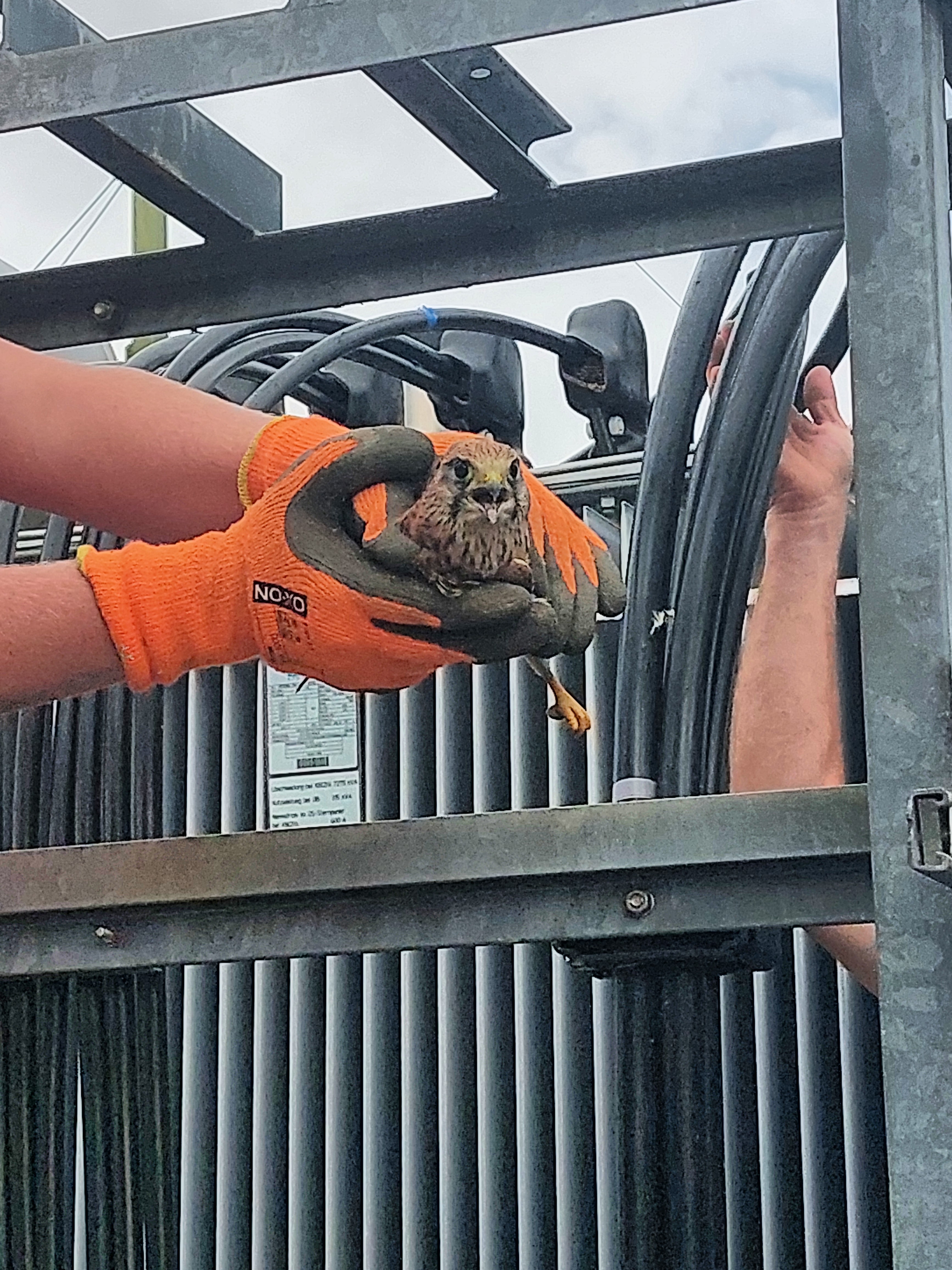 Glück im Unglück hatte ein junger Falke im Umspannwerk Wilhelmsburg. Der Raubvogel verfing sich mit einem Flügel und konnte nicht mehr wegfliegen.