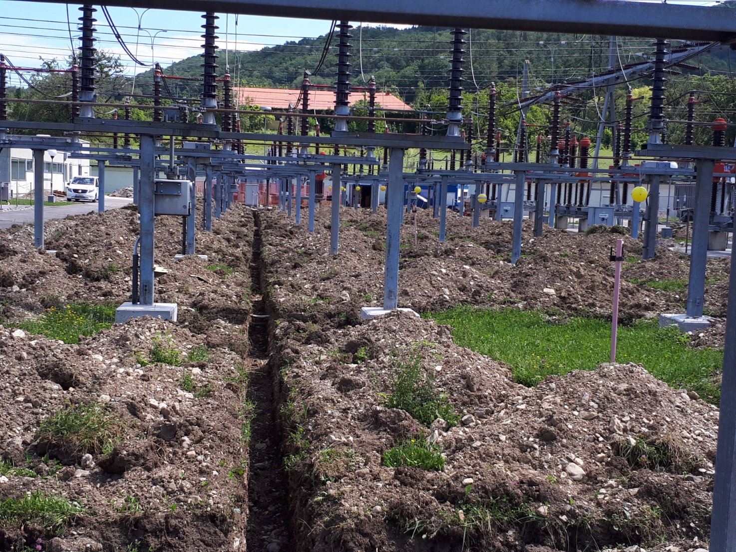 „Was aussieht, wie das Werk eines wütenden Riesenmaulwurfs, sind in Wahrheit Arbeiten an unserer Erdungsanlage“, informiert Sprecher Stefan Zach. Konkret wird im Umspannwerk Traisen bis Ende September ein neues Erdungssystem im Bereich der 110kV-Freiluftanlage verlegt. Da die Erdungsverbindungen ca. 80 cm unter Niveau eingegraben werden, musste der komplette Boden aufgegraben werden.