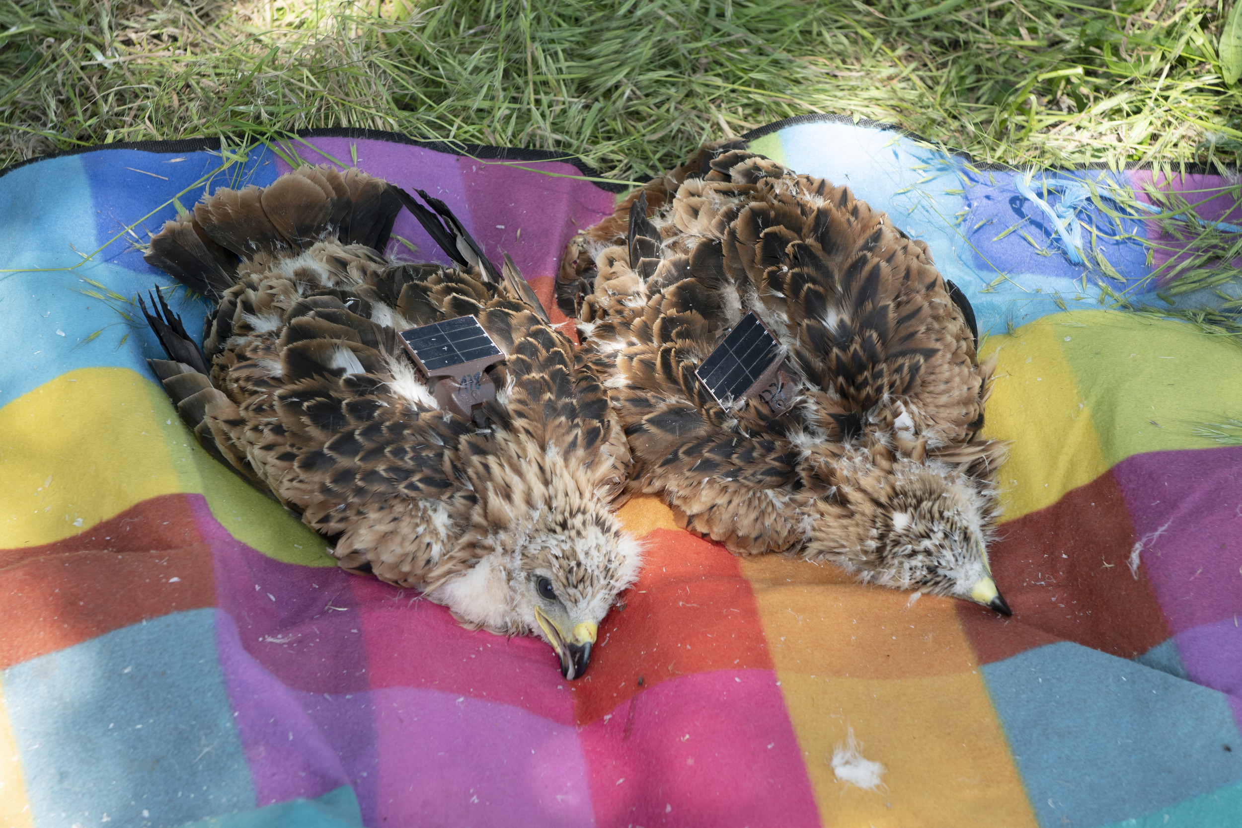 Bild 1: Die jungen Rotmilane werden mit solarbetriebenen GPS-Sendern ausgestattet, um die Flugrouten und Aufenthaltsorte nachvollziehen zu können.