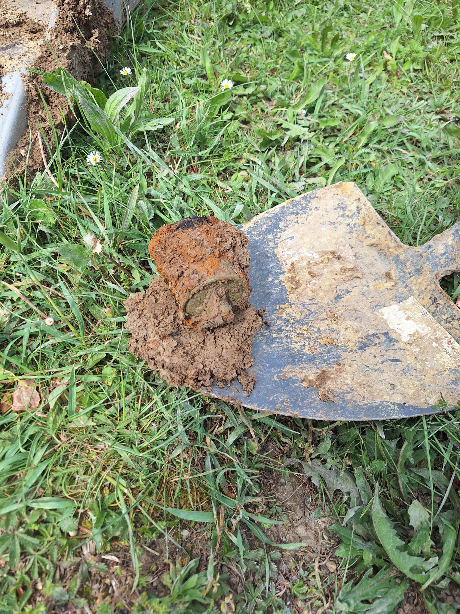 Der Entminungsdienst barg die Granate und suchte den Nahbereich auf weitere Kriegsrelikte ab. Dabei wurden noch Zünder für die Granate sicher gestellt. Leider stellte sich bei der Suche auch heraus, dass eine Person unter dieser vergraben war.